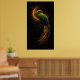 This enchanting wall art features a radiant, mythical bird perched gracefully beneath a glowing crescent moon. Its emerald and gold feathers shimmer with an otherworldly light, cascading into a long, fiery tail that illuminates the night around it. Set against a deep, star-speckled backdrop, the artwork blends fantasy and elegance, creating a sense of mystery and celestial wonder. Perfect for adding a touch of magic and serenity to any space, it invites viewers into a world where nature and starlight exist in perfect harmony.