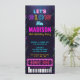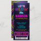 Feiern Sie Ihre Geburtstagsfeier mit unserer Einladung zum Neon Glow Ticket. Ticket Pass Features futuristische lasst uns Text auf dunklem Hintergrund leuchten. Dieses trendige Design ist ideal für Rolldisco oder glänzendes Party.