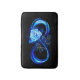 Luminous infinity symbol with glowing, beautiful, lushly blooming rose made of blue flames on black background.