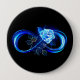 Luminous infinity symbol with glowing, beautiful, lushly blooming rose made of blue flames on black background.