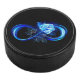 Glowing infinity with blue rose eishockey puck