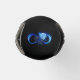 Luminous infinity symbol with glowing, beautiful, lushly blooming rose made of blue flames on black background.