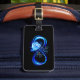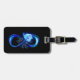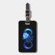 Luminous infinity symbol with glowing, beautiful, lushly blooming rose made of blue flames on black background.