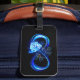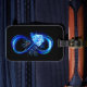 Luminous infinity symbol with glowing, beautiful, lushly blooming rose made of blue flames on black background.
