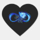 Luminous infinity symbol with glowing, beautiful, lushly blooming rose made of blue flames on black background.
