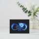 Luminous infinity symbol with glowing, beautiful, lushly blooming rose made of blue flames on black background.