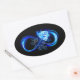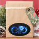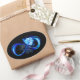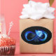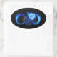 Luminous infinity symbol with glowing, beautiful, lushly blooming rose made of blue flames on black background.