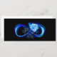 Luminous infinity symbol with glowing, beautiful, lushly blooming rose made of blue flames on black background.