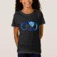 Luminous infinity symbol with glowing, beautiful, lushly blooming rose made of blue flames on black background.