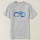 Luminous infinity symbol with glowing, beautiful, lushly blooming rose made of blue flames on black background.