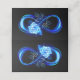 Luminous infinity symbol with glowing, beautiful, lushly blooming rose made of blue flames on black background.