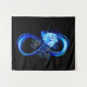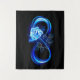 Luminous infinity symbol with glowing, beautiful, lushly blooming rose made of blue flames on black background.
