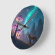Glowing Mushroom Forest Fox Fantasy Art Runde Wanduhr