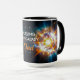 Fuel your mornings with the ultimate energy of the universe using this visually striking oversized drinkware. This brilliant cup features a wrap-around print of a massive, hyper-realistic cosmic explosion. Intense beams of neon orange, bright yellow, and electric blue burst outward from a glowing white core, creating an incredibly dynamic scene. The smartly integrated template space provides the perfect area to add a bold name, an inspiring quote, or a fun gamer tag.