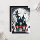 Set the tone for your Halloween party with this charming invitation! Featuring a haunted house silhouetted against a full moon, a flying witch, playful ghosts, bats, and a spider dangling from a web, this design captures the essence of Halloween magic with it's black and white colors but the windows in a greenish hue and the red letters calling for all the fiends. Perfect for costume parties, trick-or-treat gatherings, or kid-friendly Halloween bashes, this invitation adds a touch of fun and fright to your event. Customize the card with your party details and prepare for a ghoulishly good time!