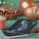 Glühender Neon Basketballspieler mit einem Ball, der bereit ist, den Ball im Netz zu versenken.