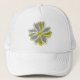 Dieser hübsche, weiße Blumenhut zeichnet sich durch ein digitales Bild einer dunklen Blume mit weißen und gelben Blütenblättern mit gelbem Zentrum aus. Die Blätter sehen aus, als würden sie mit einer schönen reflektierenden Qualität glühen. Es wäre ein perfekter Hut, um beim Tennisspielen zu tragen, und die Blume passt sogar zu den Farben eines Tennisballs. Dieser Hut ist definitiv nicht aus.