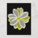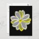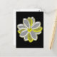 Diese hübsche florale Postkarte zeigt ein digitales Bild einer dunklen Blume mit weißen und gelben Blütenblättern mit gelbem Zentrum. Die Blätter sehen aus, als würden sie mit einer schönen reflektierenden Qualität glühen. Die Blume befindet sich auf einem schwarzen Hintergrund, um maximalen Kontrast zu erzielen, und das Ergebnis ist atemberaubend.