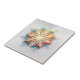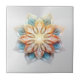 Diese moderne Kachel weist eine dreidimensionale, farbenfrohe Mandala auf einem matten silbernen Hintergrund auf.