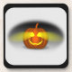 Dieses Design ist mit einem orangefarbenen Kürbis ausgestattet, der im Dunkeln zu leuchten scheint. Eine Kerze leuchtet die Augen auf und lächelt. Hinter und an den Kürbisseiten ist ein dunkler Schatten zu sehen. Ein schwarzer Rahmen wurde hinzugefügt. Diese Untersetzer sind rund oder quadratisch.