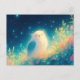 Glowy White Owl in Starry Night Meadow Postkarte