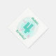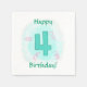 Das Gemälde der Nummer vier in einem grünen Aqua mit vier rosa Wirbel um sich herum, mit Happy Birthday, ist auf Papierservietten gedruckt.