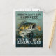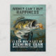 Dieses Bild zeigt einen großen Bass mit offenem Mund, der gerade dabei zu sein scheint, einen Köder zu beißen. Es ist ein humorvolles Beispiel für die Aussage, Geld kann Glück nicht kaufen, aber es kann eine Menge Fanggerät kaufen. Das Bild ist ein beliebtes motivierend Plakat für Angelfreunde.