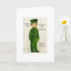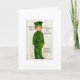 Eines kleidete die Vintage St Patrick Tagesgruß-Dualkartenverarbeitung, die einen irischen Militärsoldaten kennzeichnet, in einer grünen Uniform und in einer Kappe an. An der Spitze der Front der Karte sagt sie, "eine des feinsten" und "St Patrick Tagesgrußes." In Richtung zur Unterseitenfront der Karte, sagt sie, "Gott segnen liebes altes Irland, unser Zuhause und alle ihre Söhne, where'er, das sie durchstreifen." Innerhalb der Karte ist dieser Vers: "Wohin Sie gehen und was auch immer Sie tun, Mai ist das Glück vom irischen dort mit Ihnen. Glücklichen St Patrick Tag!"
