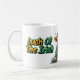 Eine irische Tasse, die das perfekte Geschenk am St. Patrick's Day ist, mit einer Typografie, die liest, das Glück des Irischen und ein Niedliches irisches Hochland Kuh Center