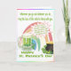 Die Front dieses glücklichen St Patrick Tagesder karte kennzeichnet eine Tasse des grünen Bieres, des Topfes Goldes u. des Regenbogens, mit der folgenden Mitteilung: "Wohin Sie gehen und was auch immer Sie tun, Mai ist das Glück vom irischen dort mit Ihnen". Mitteilung innerhalb der Karte: Für jedes Blumenblatt auf dem Kleeblatt