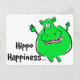 Glück Hippo - Postkarte - grüner Hippo mit schwarzem Text.