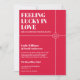 Modernes und minimales Hochzeitsthema "Lucky in Liebe" mit vierblättriges Kleeblatt in Herzformen, die Herzen von vier Seiten in Rot- und Rosatönen verbinden.