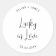Lucky in Liebe Lottery Ticket Gastgeschenke Hochzeiten Klassischer Rundaufkleber