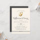 Rustikale Probe-Dinner-Einladung mit dunkelpflaumenbraunen Schriftzeichen, "Glück in der Liebe" und goldenen Aquarellhufenpaaren ganz oben. Die Seildetails, die sich unten im Seil abzeichnen, vervollständigen das Aussehen. Wir empfehlen das Papier Artisan Felt Ecru für eine rustikale luxuriöse Textur und warme Creme Oberfläche.