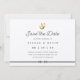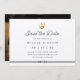Rustikales Save the Date Design mit dunkelpflaumenbraunen Schriftzeichen, oben goldene Aquarellhufenpaare und unten im Seil detailliert. Fügen Sie der Rückseite ein horizontal oder landschaftsorientiertes Foto hinzu.