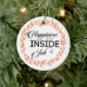 Glück ist eine Insider-Grafik mit einem pfirsichrosa Kranz und Herz. Glück, Liebe und innerer Frieden sind immer von innen. Benutzerdefiniertes Grafikdesign mit Liebe.