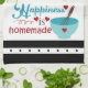 Dieses ist ein niedliches Küchentuch, das eine mischende Schüssel kennzeichnet und wischt und Staaten "Glück ist selbst gemacht".