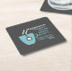 Das lustige quadratische Untersetzer Design für Teeliebhaber zeigt die Silhouette der Wassa-Tee-Tasse mit einem lustigen Zitat, das lautet: "Glück kommt aus innerer Ruhe. Der innere Frieden kommt von TEA." Aqua und Weiß auf kohlegrauem Hintergrund