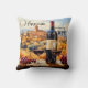 Ein künstlerisches Design-Kissen mit einem italienischen Fantasy-Landschaftsbild mit Rotwein. Schön für jeden Weinliebhaber.