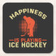 Hockey Untersetzer mit einer Silhouette Hockey-Spieler liest Happiness spielt Eishockey!