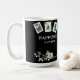 Glück ist Mah Jongg spielen mit der Girls-Kaffee-Tasse! Dies ist eine lustige Mah Jongg Kaffee-Tasse mit Aquarellkacheln und einem chinesischen Crab Apple Stamm Set vor einem schwarzen Hintergrund. Für Sie oder den Mah Jongg Liebhaber in Ihrem Leben, es ist das perfekte Geschenk.