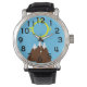 Diese Männeruhr hat ein von den Indianern inspiriertes Gebirgsdesign in Braun und die Sonne in Gelb zu Ehren des Monats des amerikanischen Nationalerbes. Der Berg symbolisiert das Ziel, und die Sonne symbolisiert das Glück.