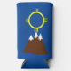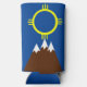 Dieser Seltzer kann cooler hat ein Indianerisches inspiriertes Gebirgsdesign in Braun und die Sonne in Gelb zu Ehren des Monats des Amerikanischen Ureinwohnerbes. Der Berg symbolisiert das Ziel, und die Sonne symbolisiert das Glück.
