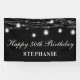 Dieses 50. Geburtstagsbanner mit Leuchten und hängenden Mauerkrügeln auf schwarzem Hintergrund. Personalisieren Sie es mit einem Namen.