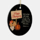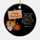 Stilvolles GLÜCKLICHes DANKSGIVING Ornament, entworfen mit einem Kürbis, Laternenpfahl und Herbst Blätter Bild, plus eine Christliche Bibel Vers aus den Philippinen 4:19. Passen Sie Ihren Gruß auf der Rückseite an. Weitere Farben und passende Grußkarten finden Sie in der ERNTEDANK Collection.