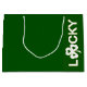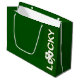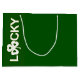 Große, dunkelgrüne Glossy-Geschenktasche mit "Lucky", senkrecht auf der Vorderseite in weißen Buchstaben mit einem weißen Klee für den Buchstaben u gedruckt. Siehe passende mittlere Geschenktasche, Einladung, Umschlag, Konfetti, Gefälligkeitskiste, Gefälligkeitsmarke, Etikett, viereckige Aufkleber und Verpackungspapier. Die gesamte St. Patrick's Day Geschenktasche finden Sie in den BESONDEREN TOUCHS| Gastgeschenken