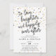 Festliche Einladungen für die Party "zu Liebe, Lachen und glücklich immer danach", auf einem Hintergrund von Rose Gold, Gold und schwarzen Konfetti. Personalisieren Sie Ihre Gesprächspartner Details in modernen schwarzen Schriften. Die Einladungen kehren zu massivem Schwarz zurück.