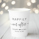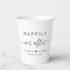 Chic Papier Tassen für Ihre Hochzeitsfeier, Verlobungsfeiern, Proberaum-Dinner, Paarduschen und andere Hochzeitsfeiern, die "Happily Ever After" in einfacher moderner Typografie und ein stilvolles Drehbuch mit Swashes, Ihre Vornamen verbunden mit einem Herz und Ihrem Hochzeitsdatum.