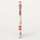Dies ist ein mit Monogramm iPhone-Gehäuse mit farbenfrohen, lächelnden Retro-Blume-Mustern mit Friedensstiften in Orange, lila, Rosa, Gelb und Rot.