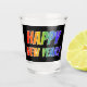 "GLÜCKLICH NEUES JAHR!" Regenbogentext, schwarzer Schnapsglas